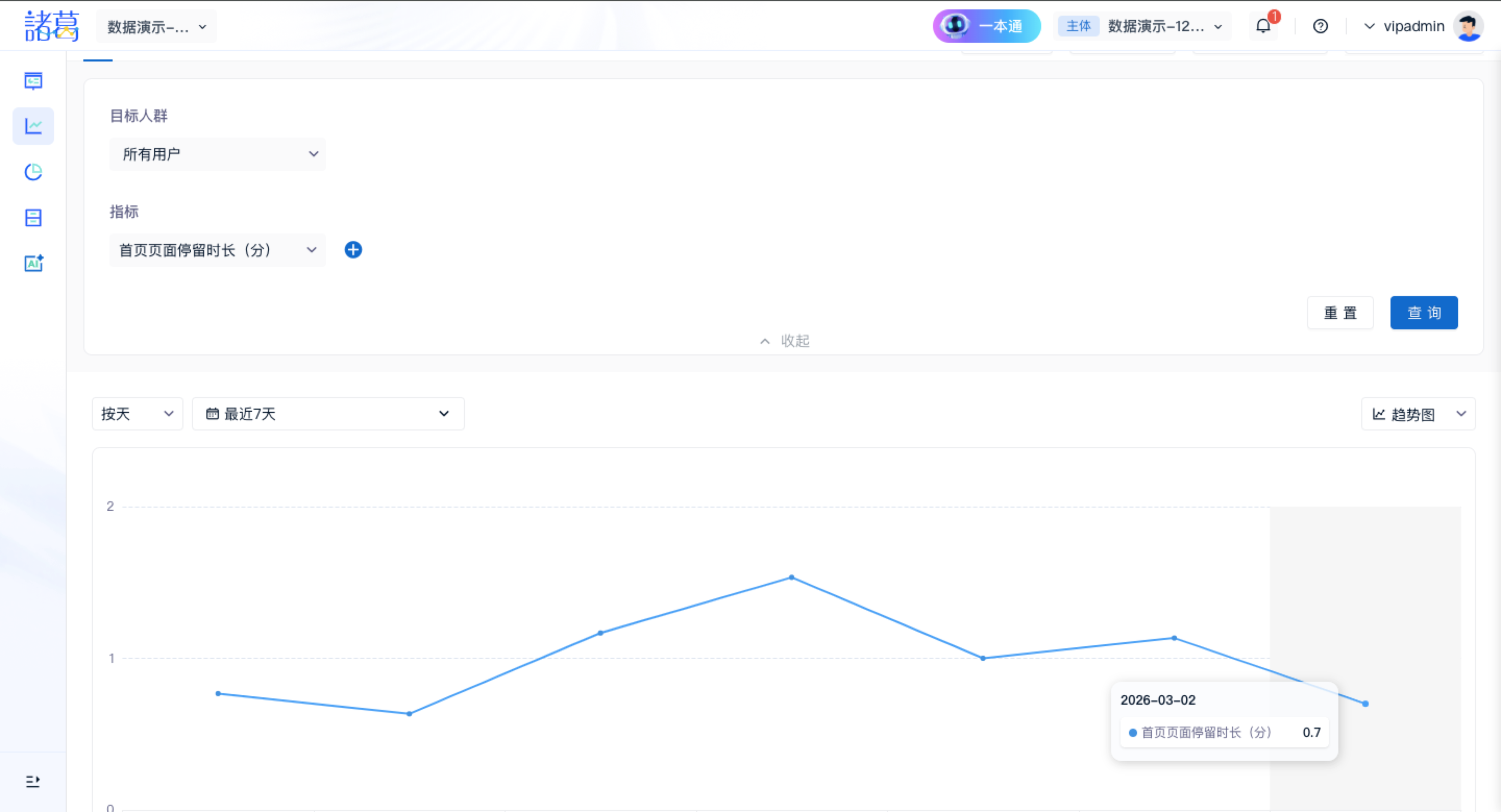 通过下拉列表中选择需要分析的自定义指标,进行查看和分析单位时间内的趋势表变化和汇总;
