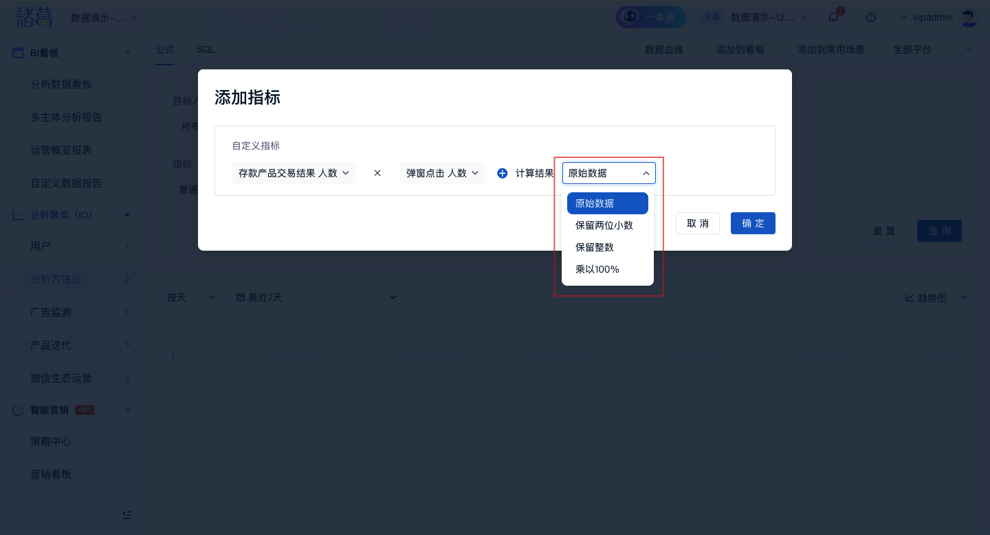 step5:计算结果展示格式:原始数据、保留两位小数、保留整数、乘以100%;