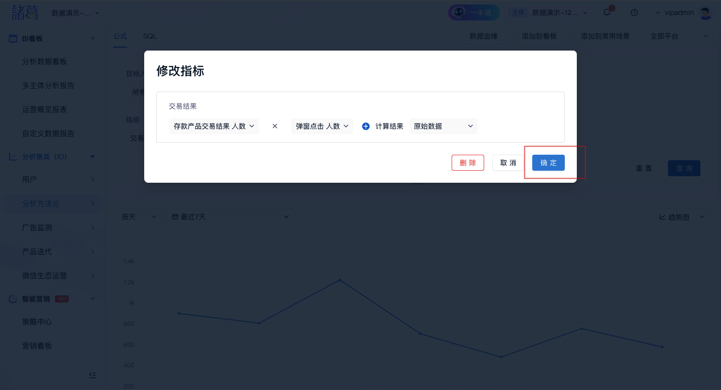 1.1登录诸葛io平台后,由「分析聚类」-「分析方法论」模块进入「自定义指标」页面;