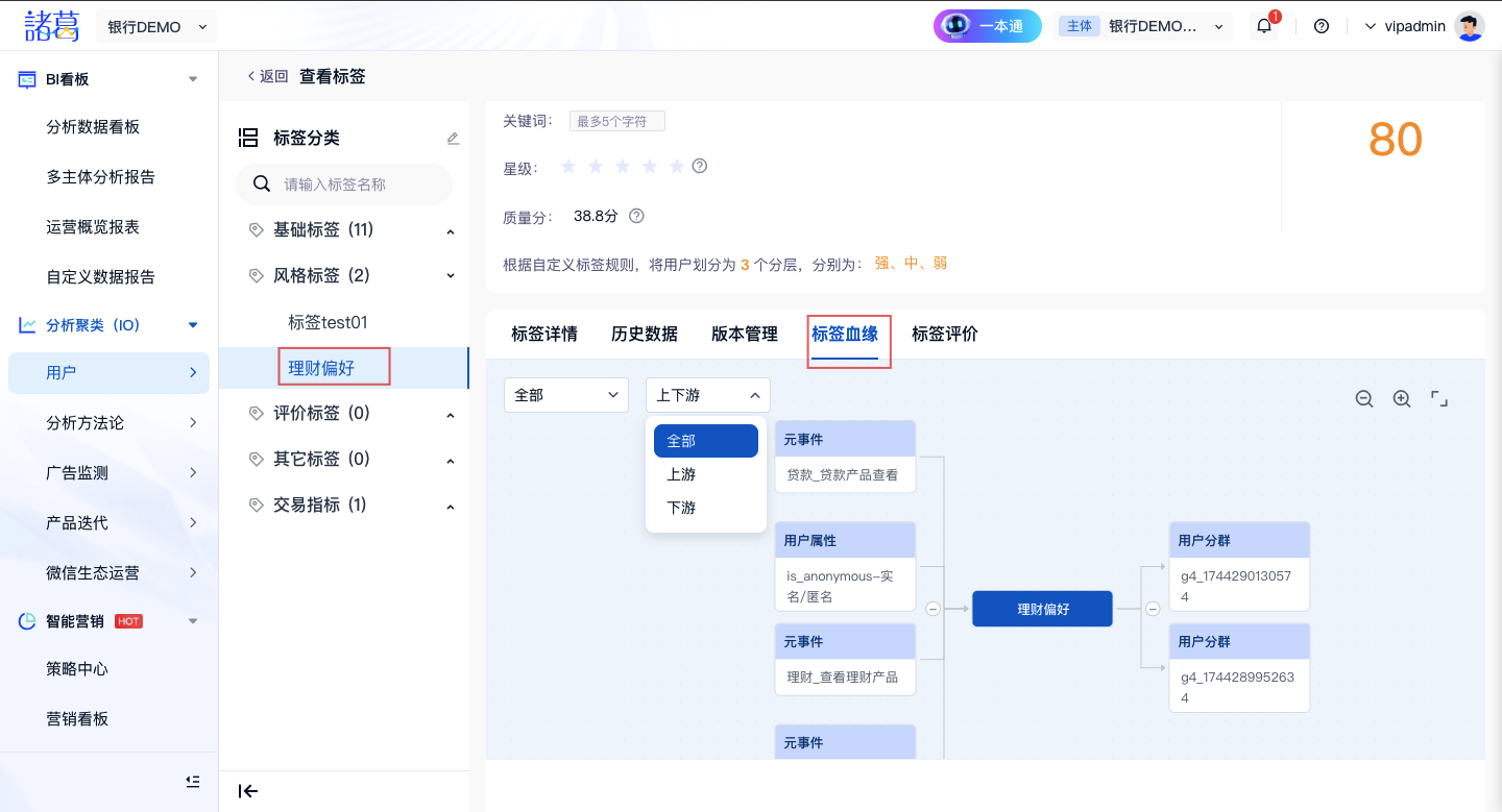 - 已下架的标签,如果分群、营销画布、看板指标、分析模型、用户画像、文章/视频、群发消息等功能已关联该下架标签,需要重新关联新的标签,在下游具体功能内会有异常提醒,下架后请注意查阅。也可提前在标签详情页“下游血缘”提前评估影响情况。