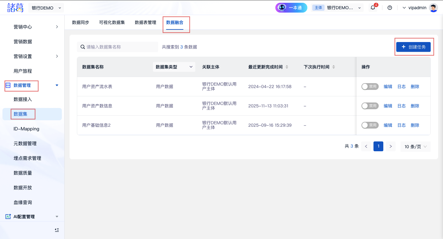 - 启用/禁用:支持对任务启用和禁用,停用后数据不再同步,禁用状态下才能删除和编辑任务;