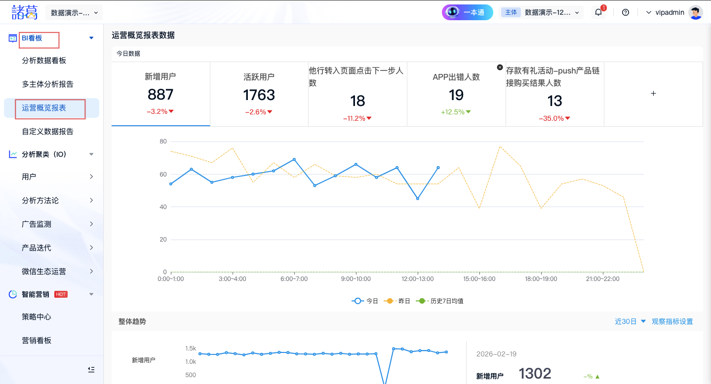 进入数据概览,您可以看到用户最新的使用情况统计和以往的趋势: